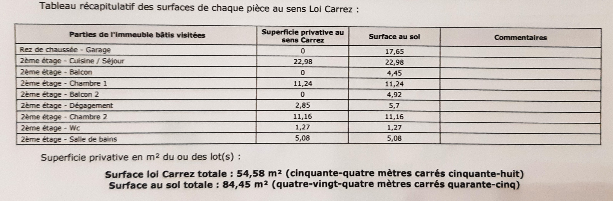 Surface loi Carrez (m²) 54,58 m²