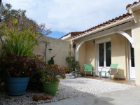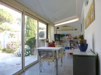 Exclusivité à 500 mètres de la plage et des commerces !! Pleine propriété pour ce charmant pavillon T3 meublé de 72m² traversant en trois faces de plain-pied avec garage de 16m². Il comprend: Cour Sud fleurie de 26m², loggia de 4m², entrée sur séjour salon cuisine américaine équipée le tout d'environ 30m², deux chambres de 10m², salle d'eau de 4m², wc, véranda de 13m² ouvrant sur une cour de 40m² fleurie avec bbq et cabanon en pvc. Combles isolés, climatisation réversible (x3), panneaux rayonnants électriques en sus, double vitrage, volets roulants électriques. DPE : C / GES : A. Pavillon entretenu habitable en l'état. Idéal à l'année ou résidence secondaire. A visiter sans tarder !!